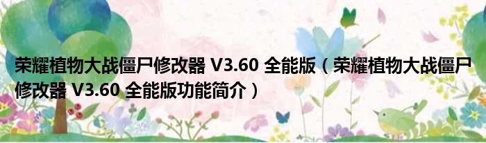 荣耀植物大战僵尸修改器 V3.60 全能版(荣耀植物大战僵尸修改器 V3.60 全能版功能简介)
