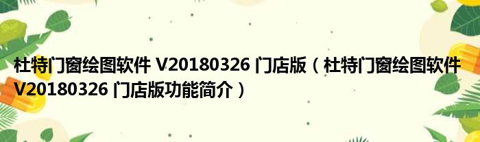 杜特门窗绘图软件 V20180326 门店版(杜特门窗绘图软件 V20180326 门店版功能简介)