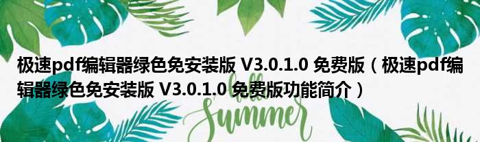 大家好,关于极速pdf编辑器绿色免安装版 V3.0.1.0 免费版,极速pdf编辑器绿色免安装版 V3.0.1.0 免费版功能简介这个很多人还不知道,小勒来为大家解答以上的问题,现在让我们一起来看看吧!