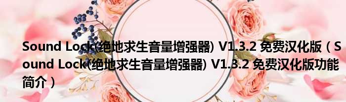 Sound Lock(绝地求生音量增强器) V1.3.2 免费汉化版(Sound Lock(绝地求生音量增强器) V1.3.2 免费汉化版功能简介)