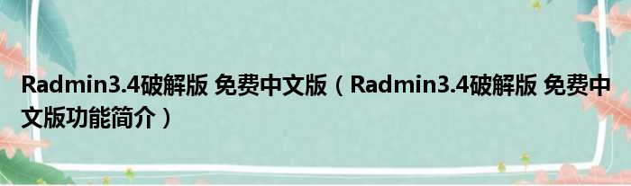 Radmin3.4破解版 免费中文版(Radmin3.4破解版 免费中文版功能简介)
