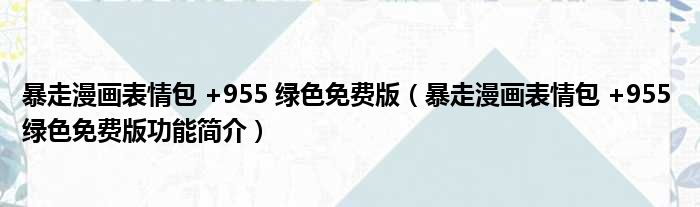 导读 大家好,关于暴走漫画表情包 +955 绿色免费版,暴走漫画表情包 +955 绿色免费版功能简介这个很多人还不知道,小勒来为大家解答以上的问题