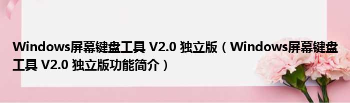 Windows屏幕键盘工具 V2.0 独立版(Windows屏幕键盘工具 V2.0 独立版功能简介)