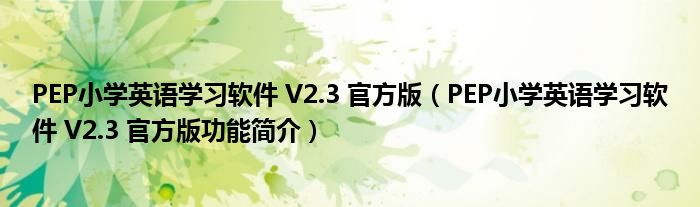 导读 大家好,关于PEP小学英语学习软件 V2 3 官方版,PEP小学英语学习软件 V2 3 官方版功能简介这个很多人还不知道,小勒来为大家解答以上的问