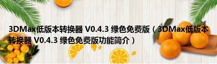 3DMax低版本转换器 V0.4.3 绿色免费版(3DMax低版本转换器 V0.4.3 绿色免费版功能简介)