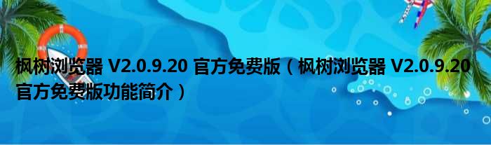 枫树浏览器 V2.0.9.20 官方免费版(枫树浏览器 V2.0.9.20 官方免费版功能简介)