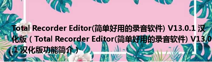 Total Recorder Editor(简单好用的录音软件) V13.0.1 汉化版(Total Recorder Editor(简单好用的录音软件) V13.0.1 汉化版功能简介)