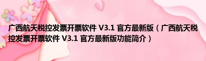 广西航天税控发票开票软件 V3.1 官方最新版(广西航天税控发票开票软件 V3.1 官方最新版功能简介)