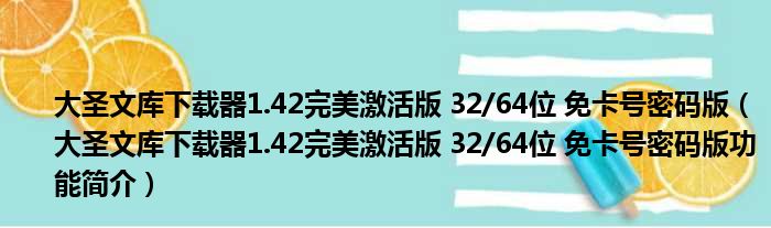 导读 大家好,关于大圣文库下载器1 42完美激活版 32 64位 免卡号密码版,大圣文库下载器1 42完美激活版 32 64位 免卡号密码版功能简介这个很