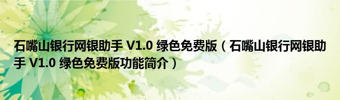 石嘴山银行网银助手 V1.0 绿色免费版(石嘴山银行网银助手 V1.0 绿色免费版功能简介)