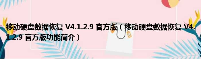 导读 大家好,关于移动硬盘数据恢复 V4 1 2 9 官方版,移动硬盘数据恢复 V4 1 2 9 官方版功能简介这个很多人还不知道,小勒来为大家解答以上的