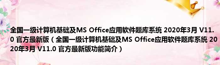 全国一级计算机基础及MS Office应用软件题库系统 2020年3月 V11.0 官方最新版(全国一级计算机基础及MS Office应用软件题库系统 2020年3月 V11.0 官方最新版功能简介)