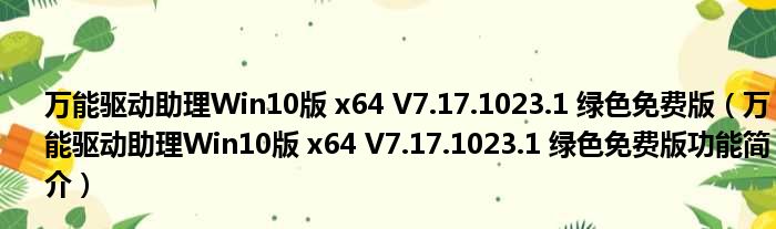 万能驱动助理Win10版 x64 V7.17.1023.1 绿色免费版(万能驱动助理Win10版 x64 V7.17.1023.1 绿色免费版功能简介)