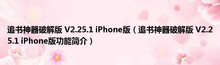 导读 大家好,关于追书神器破解版 V2 25 1 iPhone版,追书神器破解版 V2 25 1 iPhone版功能简介这个很多人还不知道,小勒来为大家解答以上的问