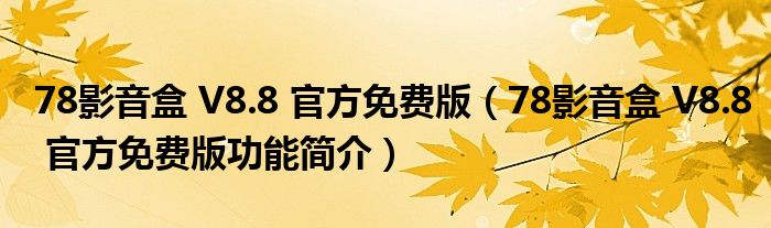 78影音盒 V8.8 官方免费版(78影音盒 V8.8 官方免费版功能简介)