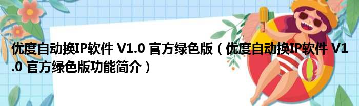 优度自动换IP软件 V1.0 官方绿色版(优度自动换IP软件 V1.0 官方绿色版功能简介)