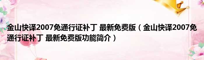 导读 大家好,关于金山快译2007免通行证补丁 最新免费版,金山快译2007免通行证补丁 最新免费版功能简介这个很多人还不知道,小勒来为大家解答以