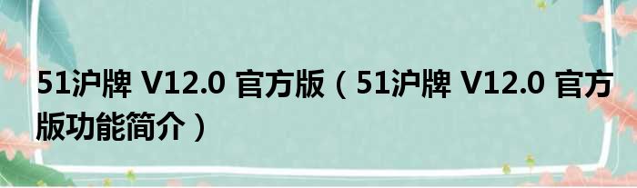 大家好,关于51沪牌 V12.0 官方版,51沪牌 V12.0 官方版功能简介这个很多人还不知道,小勒来为大家解答以上的问题,现在让我们一起来看看吧!