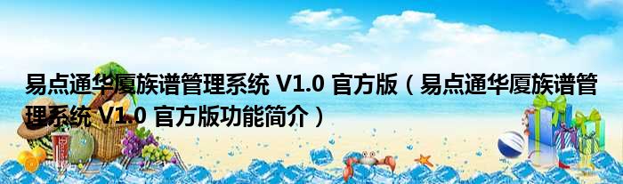 易点通华厦族谱管理系统 V1.0 官方版(易点通华厦族谱管理系统 V1.0 官方版功能简介)