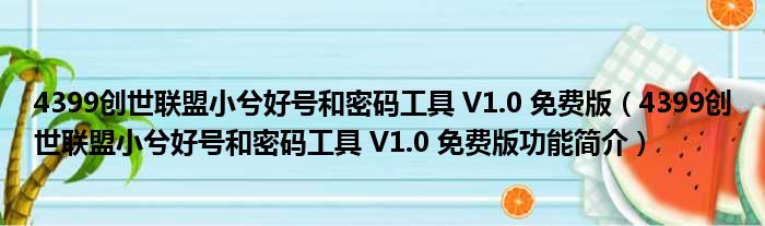 4399创世联盟小兮好号和密码工具 V1.0 免费版(4399创世联盟小兮好号和密码工具 V1.0 免费版功能简介)