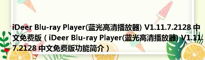 iDeer Blu-ray Player(蓝光高清播放器) V1.11.7.2128 中文免费版(iDeer Blu-ray Player(蓝光高清播放器) V1.11.7.2128 中文免费版功能简介)