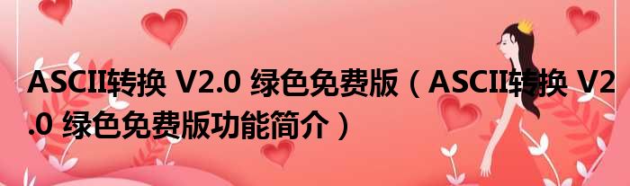 导读 大家好,关于ASCII转换 V2 0 绿色免费版,ASCII转换 V2 0 绿色免费版功能简介这个很多人还不知道,小勒来为大家解答以上的问题,现在让我