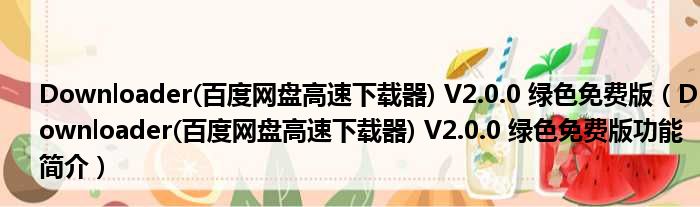 Downloader(百度网盘高速下载器) V2.0.0 绿色免费版(Downloader(百度网盘高速下载器) V2.0.0 绿色免费版功能简介)