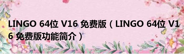 LINGO 64位 V16 免费版(LINGO 64位 V16 免费版功能简介)