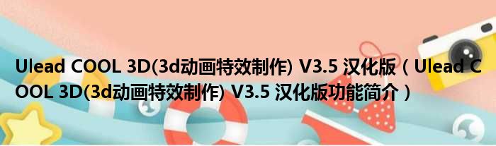 Ulead COOL 3D(3d动画特效制作) V3.5 汉化版(Ulead COOL 3D(3d动画特效制作) V3.5 汉化版功能简介)