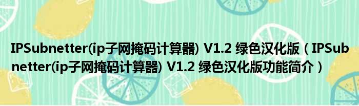IPSubnetter(ip子网掩码计算器) V1.2 绿色汉化版(IPSubnetter(ip子网掩码计算器) V1.2 绿色汉化版功能简介)