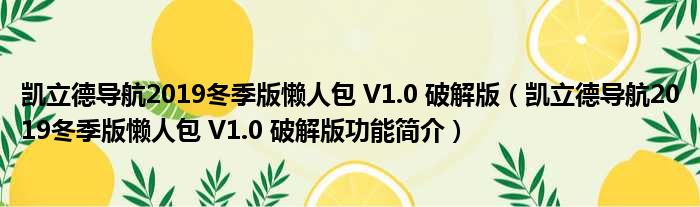 凯立德导航2019冬季版懒人包 V1.0 破解版(凯立德导航2019冬季版懒人包 V1.0 破解版功能简介)