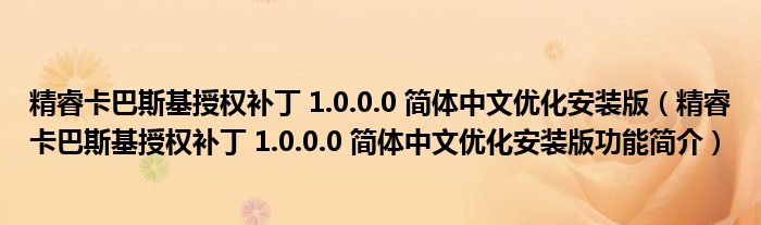 精睿卡巴斯基授权补丁 1.0.0.0 简体中文优化安装版(精睿卡巴斯基授权补丁 1.0.0.0 简体中文优化安装版功能简介)
