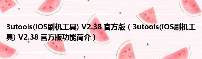 3utools(iOS刷机工具) V2.38 官方版(3utools(iOS刷机工具) V2.38 官方版功能简介)