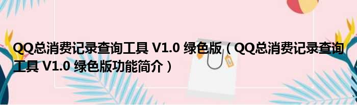 导读 大家好,关于QQ总消费记录查询工具 V1 0 绿色版,QQ总消费记录查询工具 V1 0 绿色版功能简介这个很多人还不知道,小勒来为大家解答以上的