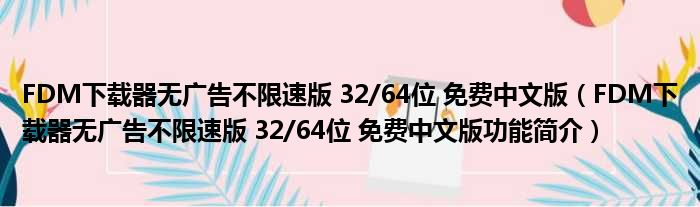 导读 大家好,关于FDM下载器无广告不限速版 32 64位 免费中文版,FDM下载器无广告不限速版 32 64位 免费中文版功能简介这个很多人还不知道,小