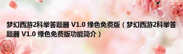 导读 大家好,关于梦幻西游2科举答题器 V1 0 绿色免费版,梦幻西游2科举答题器 V1 0 绿色免费版功能简介这个很多人还不知道,小勒来为大家解答