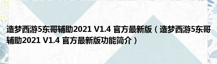 导读 大家好,关于造梦西游5东哥辅助2021 V1 4 官方最新版,造梦西游5东哥辅助2021 V1 4 官方最新版功能简介这个很多人还不知道,小勒来为大家