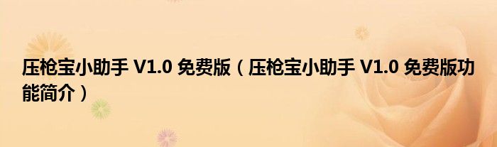 压枪宝小助手 V1.0 免费版(压枪宝小助手 V1.0 免费版功能简介)