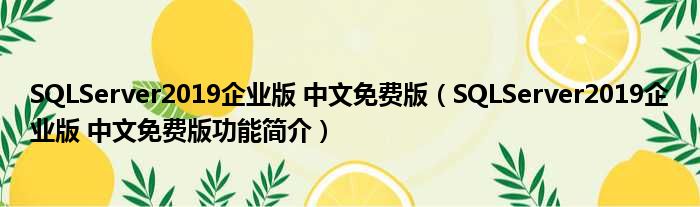 SQLServer2019企业版 中文免费版(SQLServer2019企业版 中文免费版功能简介)