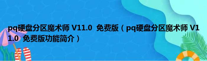 pq硬盘分区魔术师 V11.0 免费版(pq硬盘分区魔术师 V11.0 免费版功能简介)