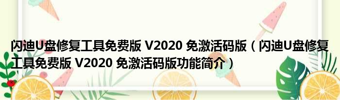 闪迪U盘修复工具免费版 V2020 免激活码版(闪迪U盘修复工具免费版 V2020 免激活码版功能简介)