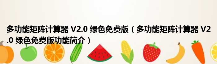 多功能矩阵计算器 V2.0 绿色免费版(多功能矩阵计算器 V2.0 绿色免费版功能简介)