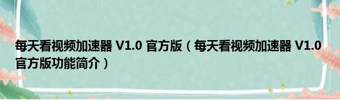 每天看视频加速器 V1.0 官方版(每天看视频加速器 V1.0 官方版功能简介)