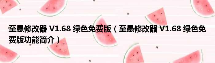 至愚修改器 V1.68 绿色免费版(至愚修改器 V1.68 绿色免费版功能简介)