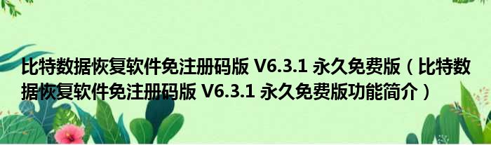 比特数据恢复软件免注册码版 V6.3.1 永久免费版(比特数据恢复软件免注册码版 V6.3.1 永久免费版功能简介)