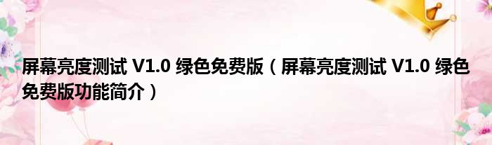 屏幕亮度测试 V1.0 绿色免费版(屏幕亮度测试 V1.0 绿色免费版功能简介)
