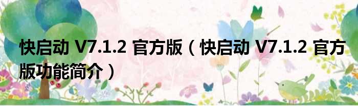 导读 大家好,关于快启动 V7 1 2 官方版,快启动 V7 1 2 官方版功能简介这个很多人还不知道,小勒来为大家解答以上的问题,现在让我们一起来看