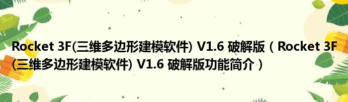Rocket 3F(三维多边形建模软件) V1.6 破解版(Rocket 3F(三维多边形建模软件) V1.6 破解版功能简介)
