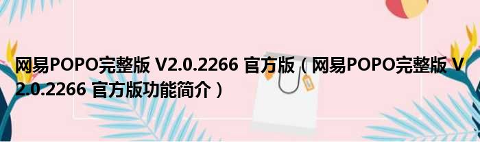 网易POPO完整版 V2.0.2266 官方版(网易POPO完整版 V2.0.2266 官方版功能简介)