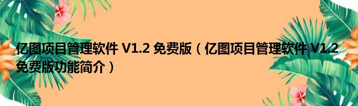 大家好,关于亿图项目管理软件 V1.2 免费版,亿图项目管理软件 V1.2 免费版功能简介这个很多人还不知道,小勒来为大家解答以上的问题,现在让我们一起来看看吧!
